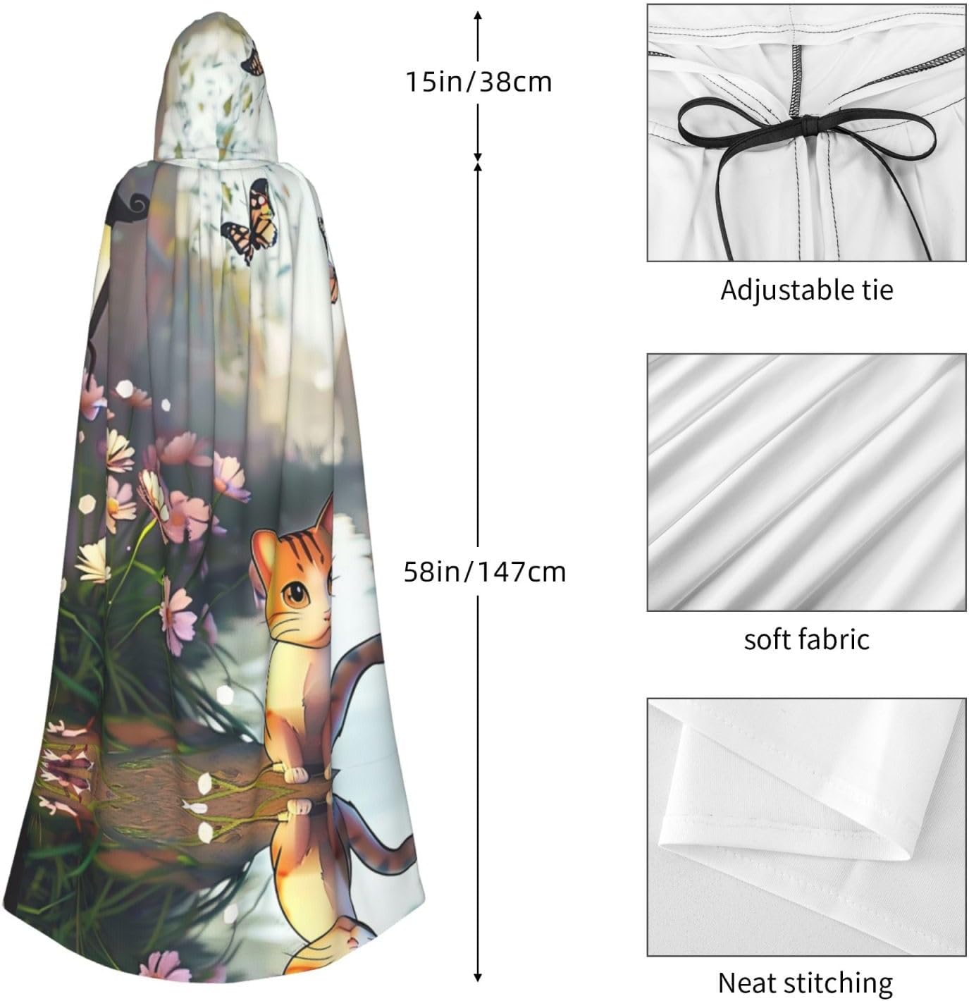 Butterfly And Cat Elevate Your Costume Game With The Unique Darkness Poncho Shawl, A Versatile And Customizable Wearable Blanket Designed For Women. This Poncho Shawl Is Perfect For A Variety Of Occasions, From Halloween Parties And Cosplay Events To Stage Performances And Themed Gatherings.Customized Design: Each Poncho Is Meticulously Designed With Full-Print Patterns, Allowing You To Express Your Unique Style And Stand Out In The Crowd. Whether You'Re Dressing Up, This Poncho Will Add A Touch Of Personality To Your Ensemble.Comfort And Durability: Crafted From Polyester, This Poncho Offers A Soft, Non-Itchy Feel That Ensures Comfort All Night Long. The Durable Material Is Built To Last, Making It A Reliable Addition To Your Costume Collection.Hooded And Long: The Poncho Features A Large, Comfortable Hood And An Extended Length, Providing Extra Coverage And Warmth. The Added Length And Hood Make It Perfect For Chilly Evenings, Ensuring You Stay Cozy And Stylish. This Poncho Is Also Ideal For Renaissance Fairs, Comic Conventions, And Any Other Event Where A Striking And Unique Accessory Is Needed.Easy Care: This Poncho Is Machine Washable And Easy To Care For, Ensuring It Maintains Its Vibrant Colors And Durability Over Time. It'S A Hassle-Free Addition To Your Wardrobe That Will Keep You Looking And Feeling Great.Whether You'Re Attending A Halloween Party, A Cosplay Event, Or A Themed Gathering, The Unique Darkness Poncho Shawl Is The Perfect Accessory To Complete Your Look. Make A Statement And Stand Out With This One-Of-A-Kind, Customizable Poncho.