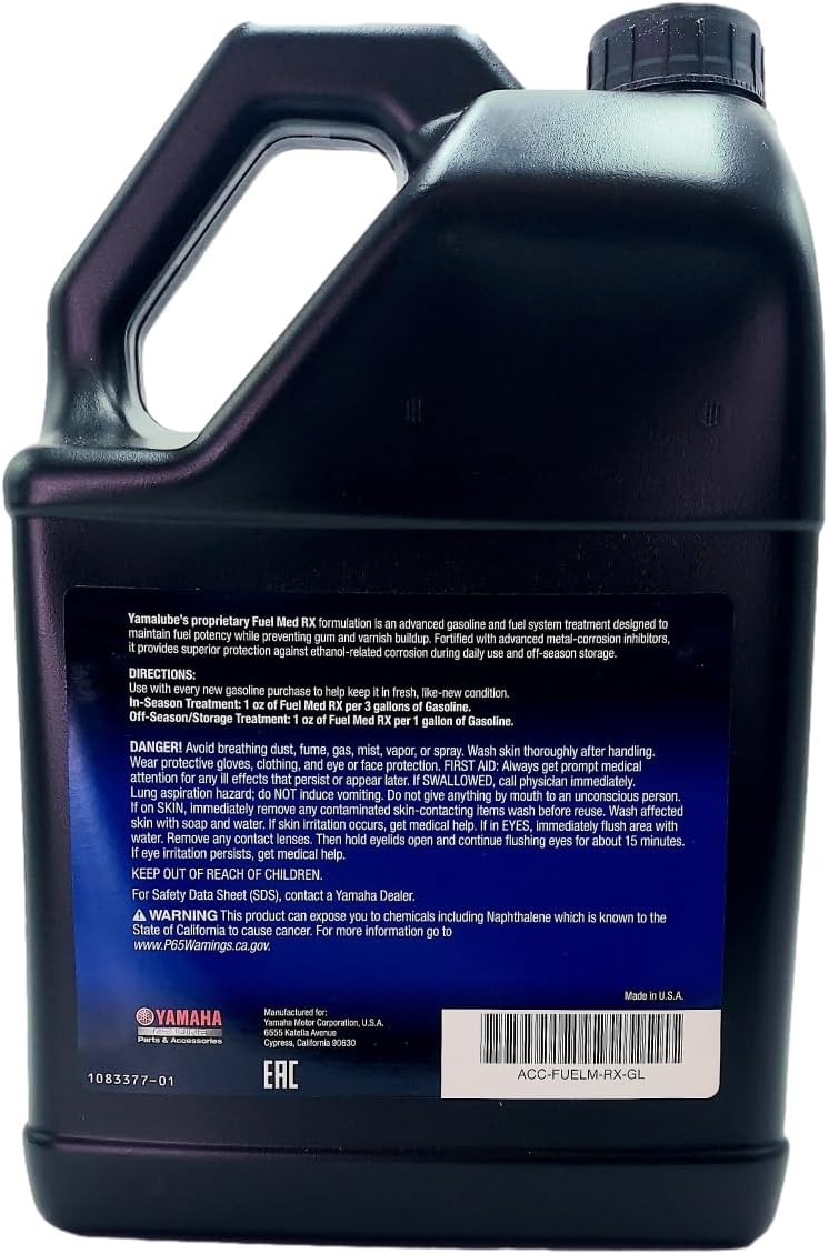 ACC-FUELM-RX-08 Yamaha Fuel Med Rx. This proprietary, alcohol-free blend fights moisture, oxidation, and phase separation in ethanol enriched fuels, and protects fuel system metals from corrosion. Use continuous treat rate if out of season fuel will sit in a tank for 7+ days.